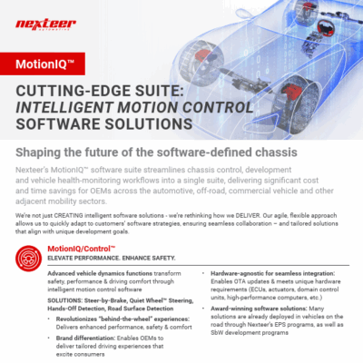 We are a global leading motion control technology company accelerating mobility to be safe, green and exciting. Our innovative product and technology portfolio includes electric and hydraulic power steering systems, steer-by-wire systems, brake-by-wire, steering columns and intermediate shafts, driveline systems and software solutions.